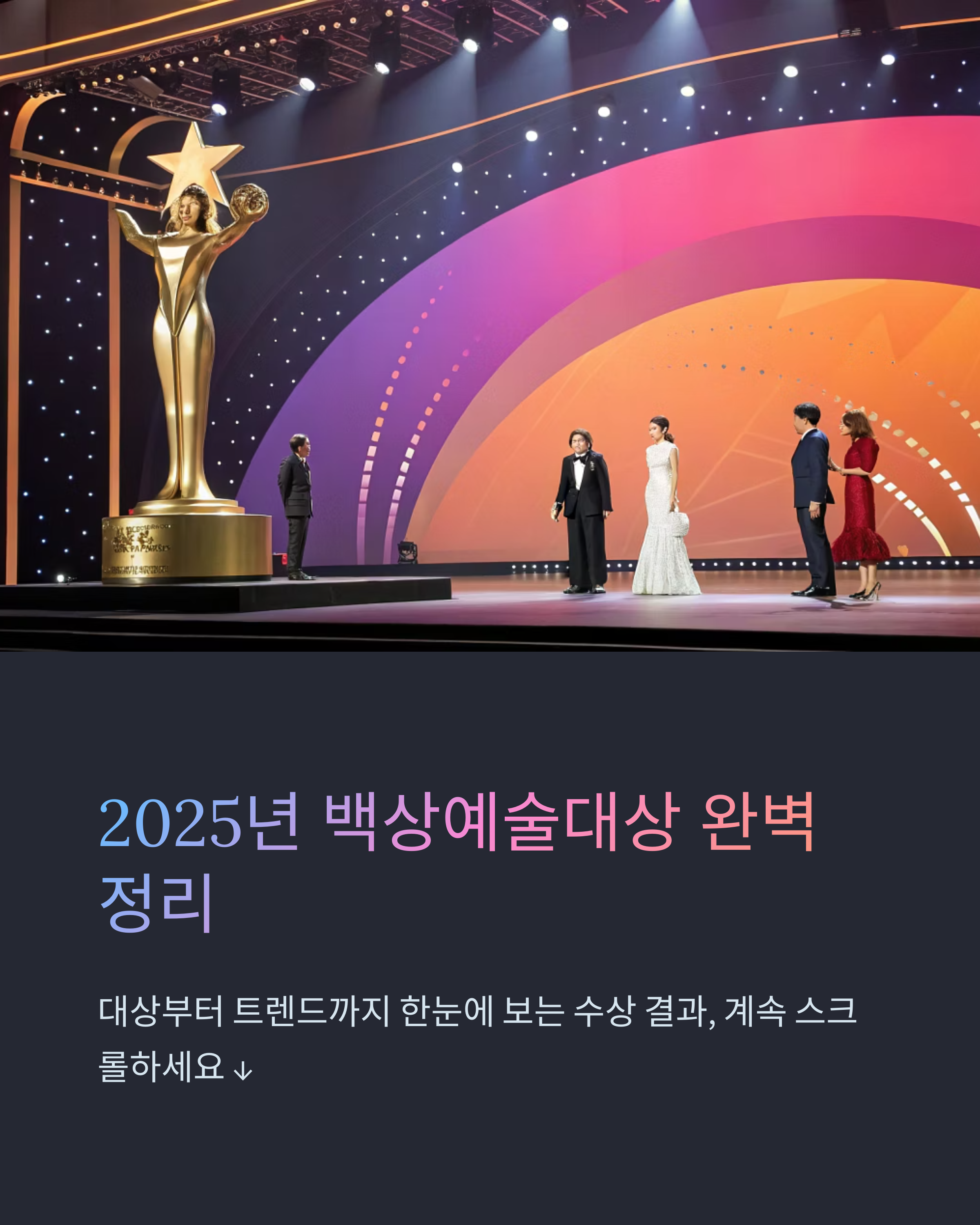 내년에는 어떤 신작과 배우들이 백상 무대를 빛낼까요? 곧 다가올 2026년 백상예술대상 미리보기 콘텐츠도 준비 중이니 많은 관심 부탁드려요.