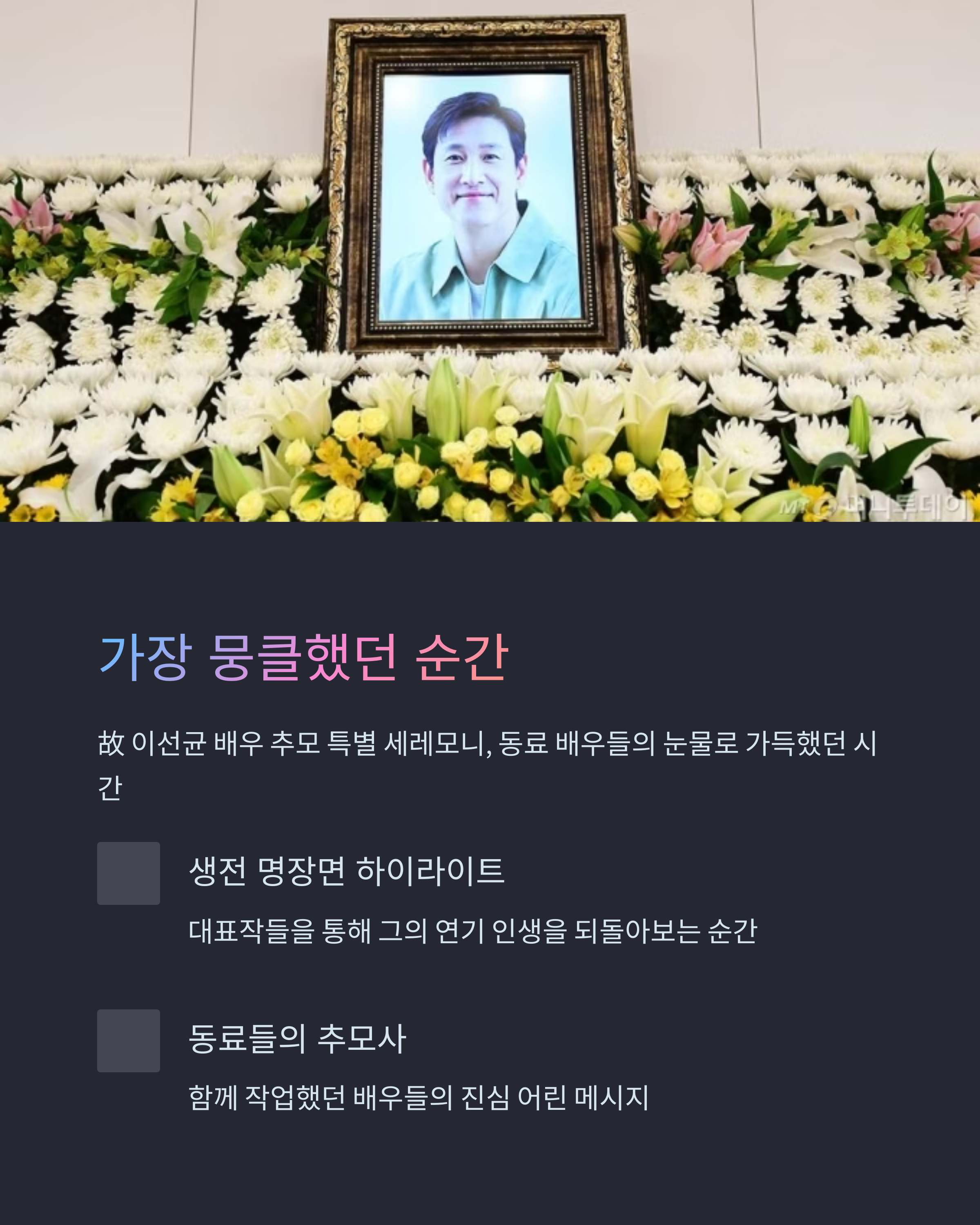- 🕯️ 이선균 추모 - 수상 소감 화제