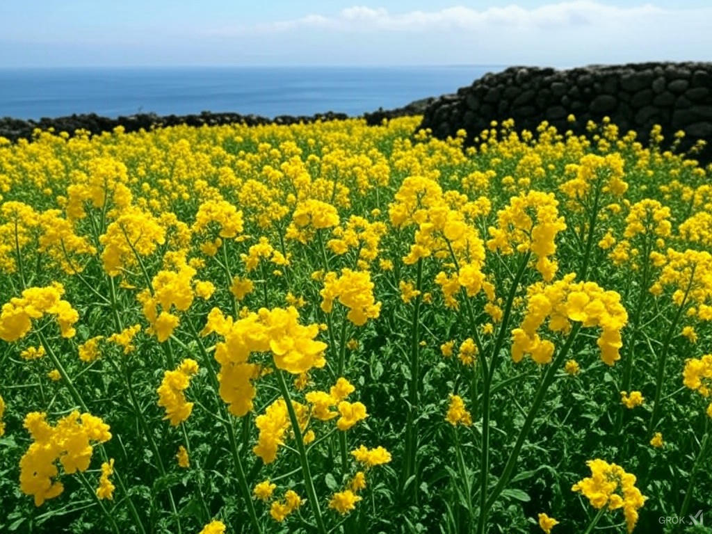 제주도 - 유채꽃과 푸른 바다의 조화 🌊