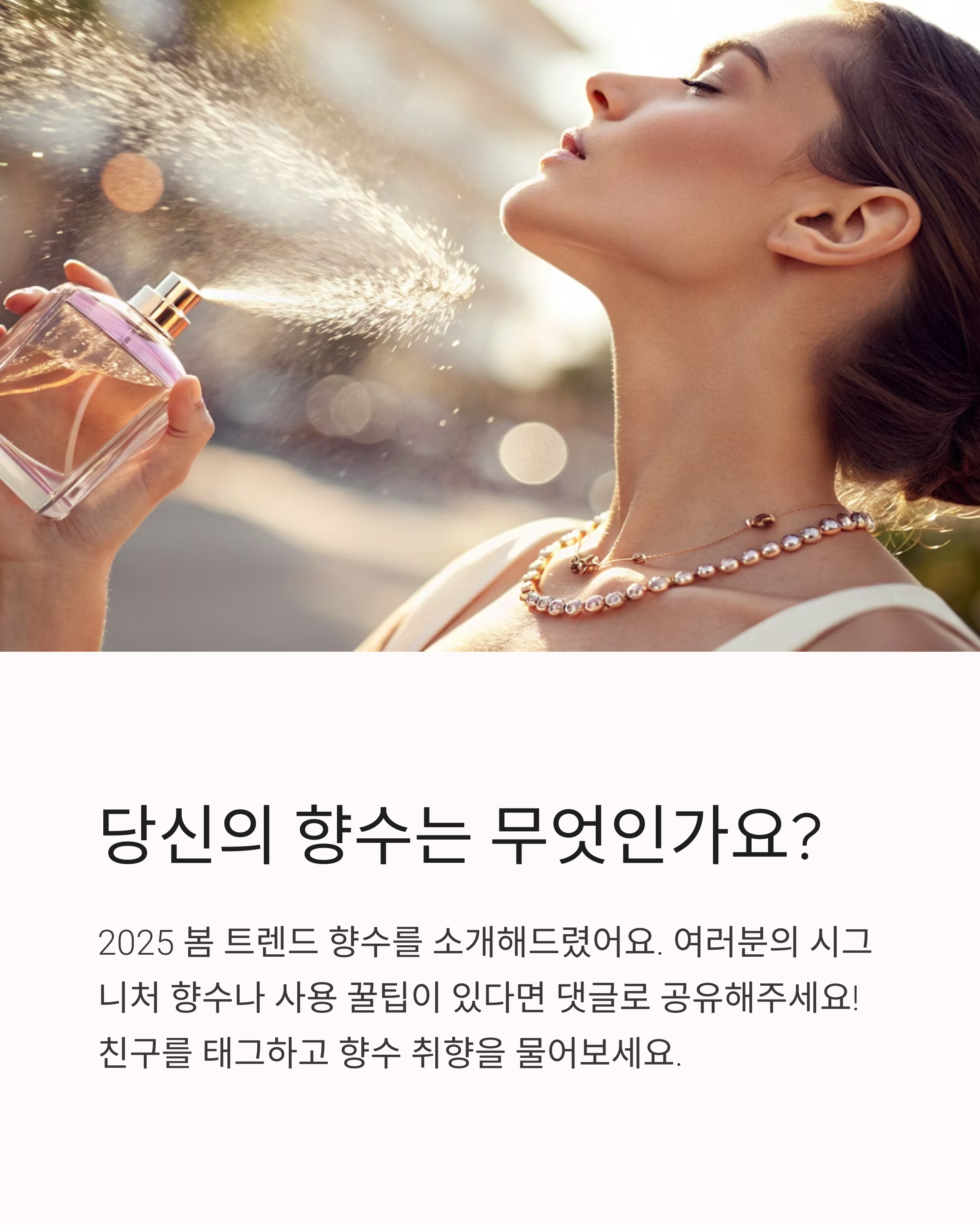 안녕하세요! 요즘 날씨가 완전히 봄 그 자체죠. 옷차림도 가벼워지고, 카페 테라스 자리에 앉아 있는 시간이 길어졌어요. 이럴 때 제일 중요한 건? 바로 향기 아닐까요. 특히 요즘은 ‘퍼퓸 인플루언서’ 계정이 인스타그램에서 유행하면서, 향수 추천이 엄청 핫한 키워드로 떠올랐더라고요. 오늘은 제가 직접 써보고 반한, 그리고 후각 고수들이 입모아 추천하는 2025 봄 여자 향수 베스트 5를 소개해드릴게요!