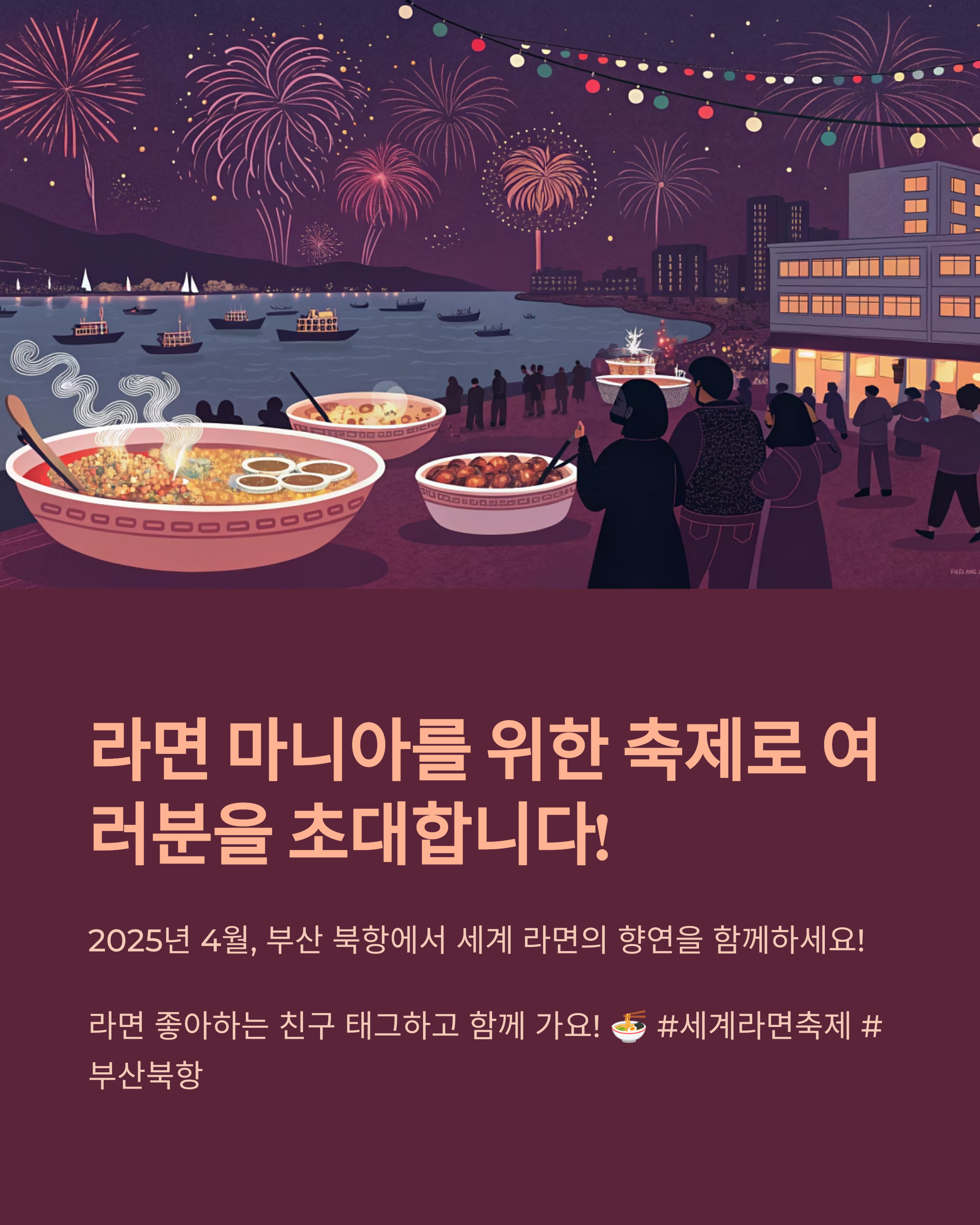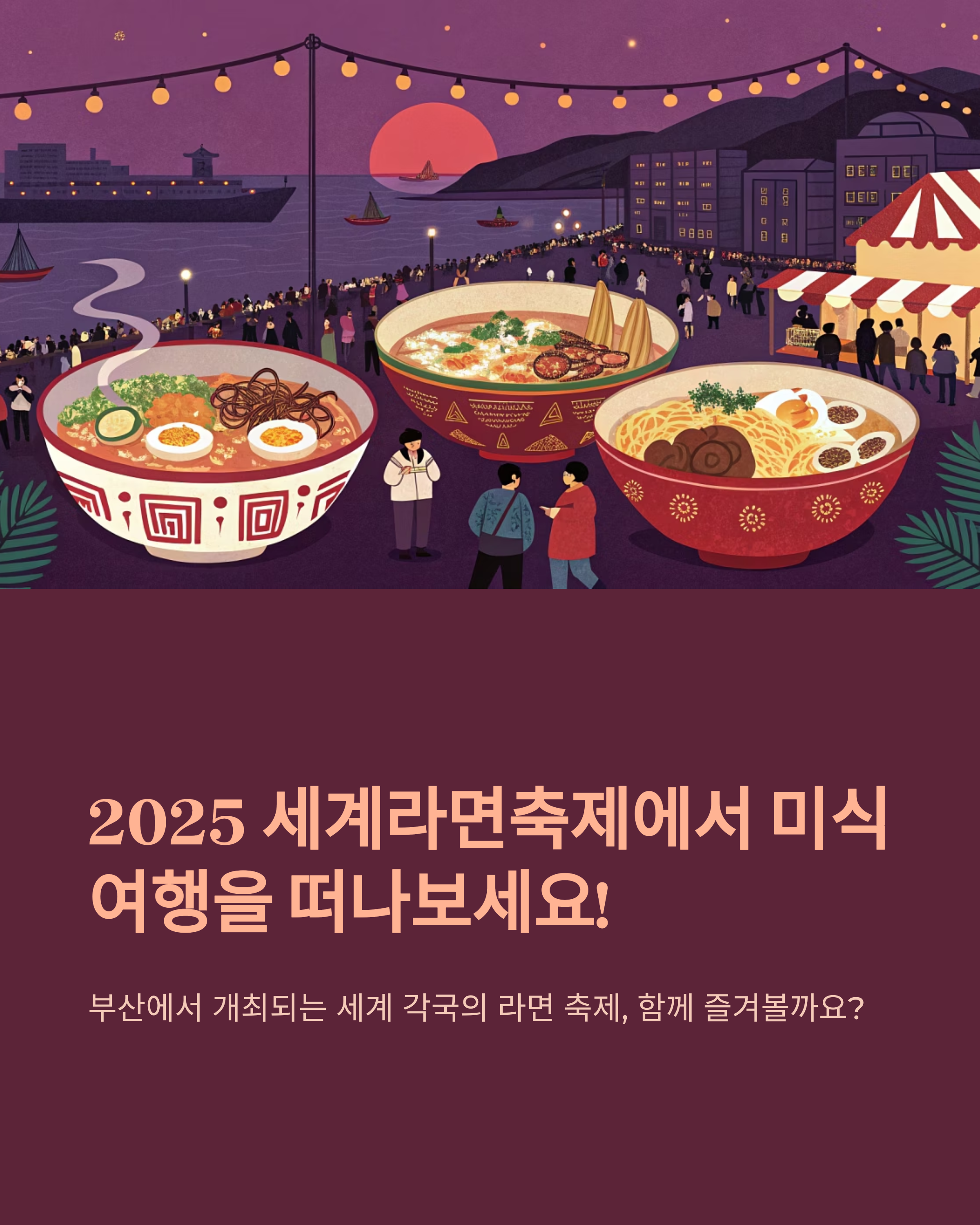 “라면으로 세계를 여행한다!” 세계 각국의 라면이 한자리에! 부산 북항에서 펼쳐지는 '2025 세계라면축제'는 그야말로 라면 애호가들의 천국입니다.