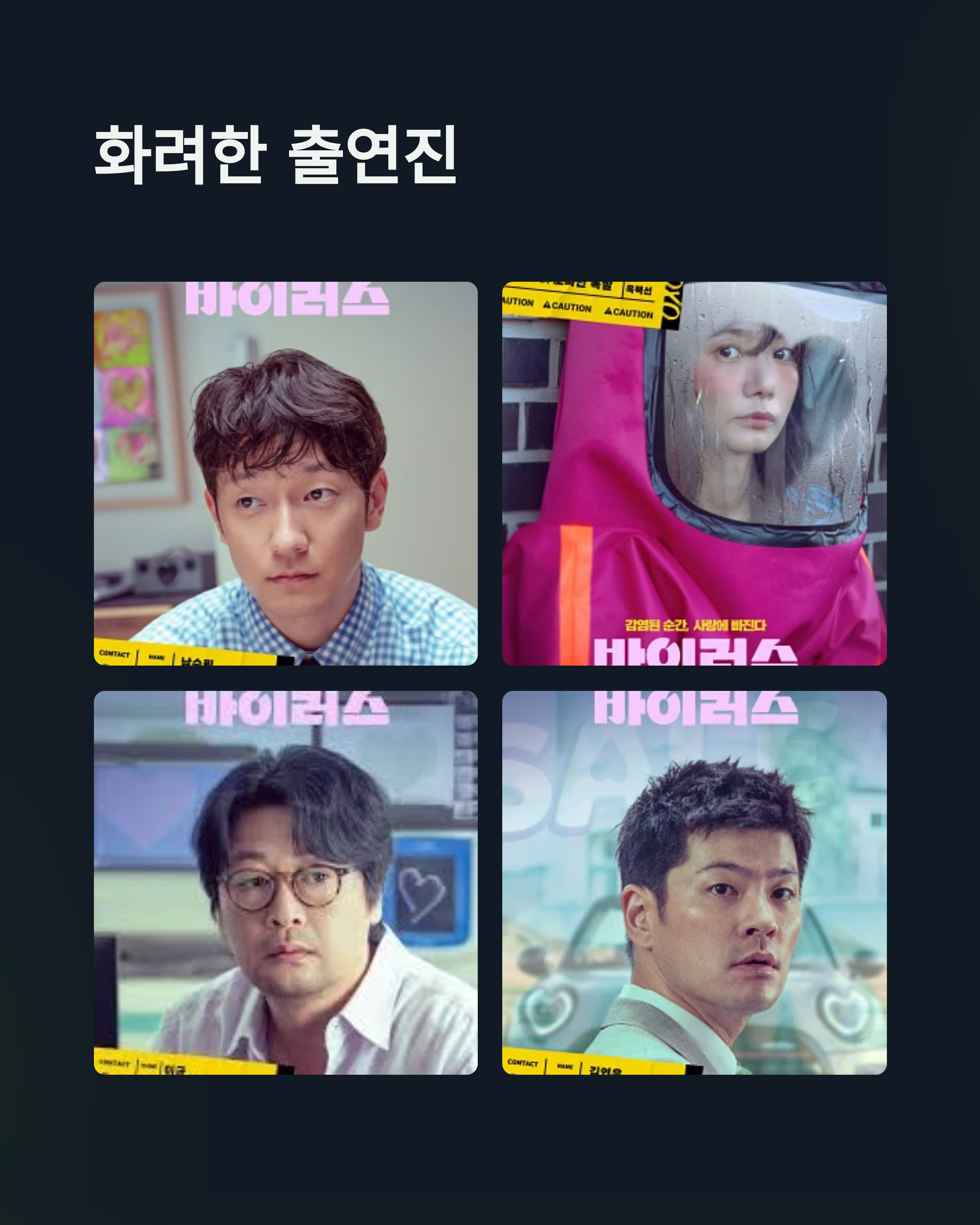 다채로운 연기 스펙트럼을 가진 배우들이 모인 ‘바이러스’. 이 조합만으로도 영화의 몰입감은 이미 보장되었다는 평가가 많습니다.