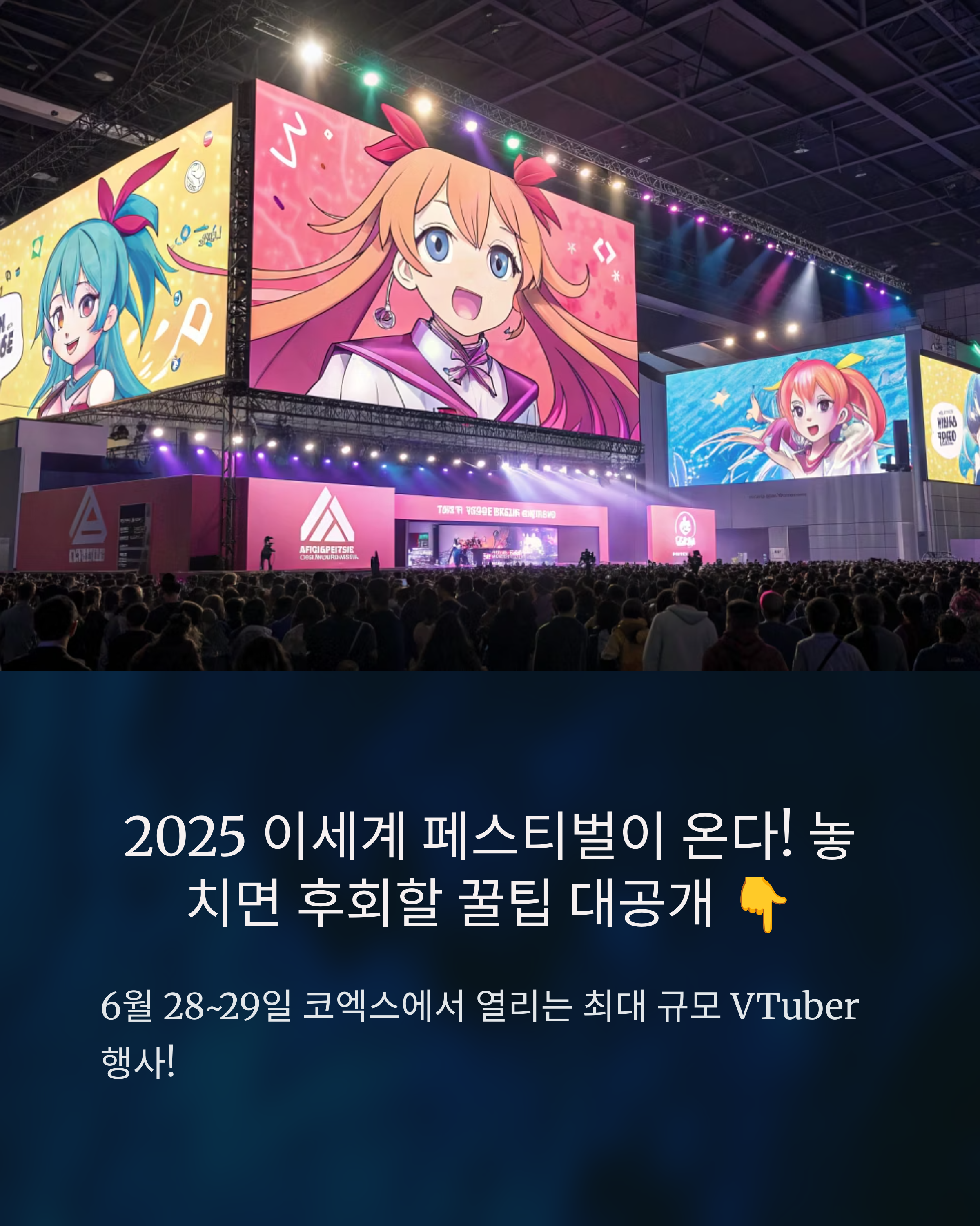 2025년 이세계 페스티벌(이하 이세페)은 2025년 6월 28일(토)~6월 29일(일), 서울 코엑스에서 양일간 진행됩니다. 매년 수만 명이 몰리는 국내 최대 규모의 애니·버추얼·오타쿠 문화 종합 행사로, VTuber, 애니메이션 성우, 코스프레 퍼레이드, 굿즈 마켓, 일러스트 전시, 팬미팅까지 다양한 콘텐츠가 마련되어 있어요. 단순한 전시회가 아닌 ‘덕심 폭발 페스티벌’ 그 자체입니다.