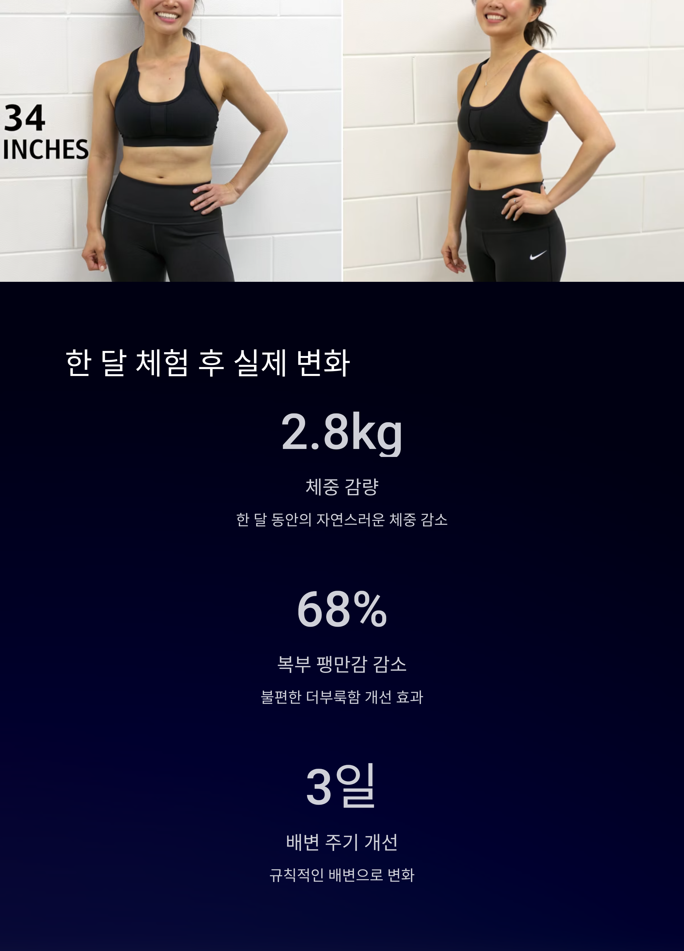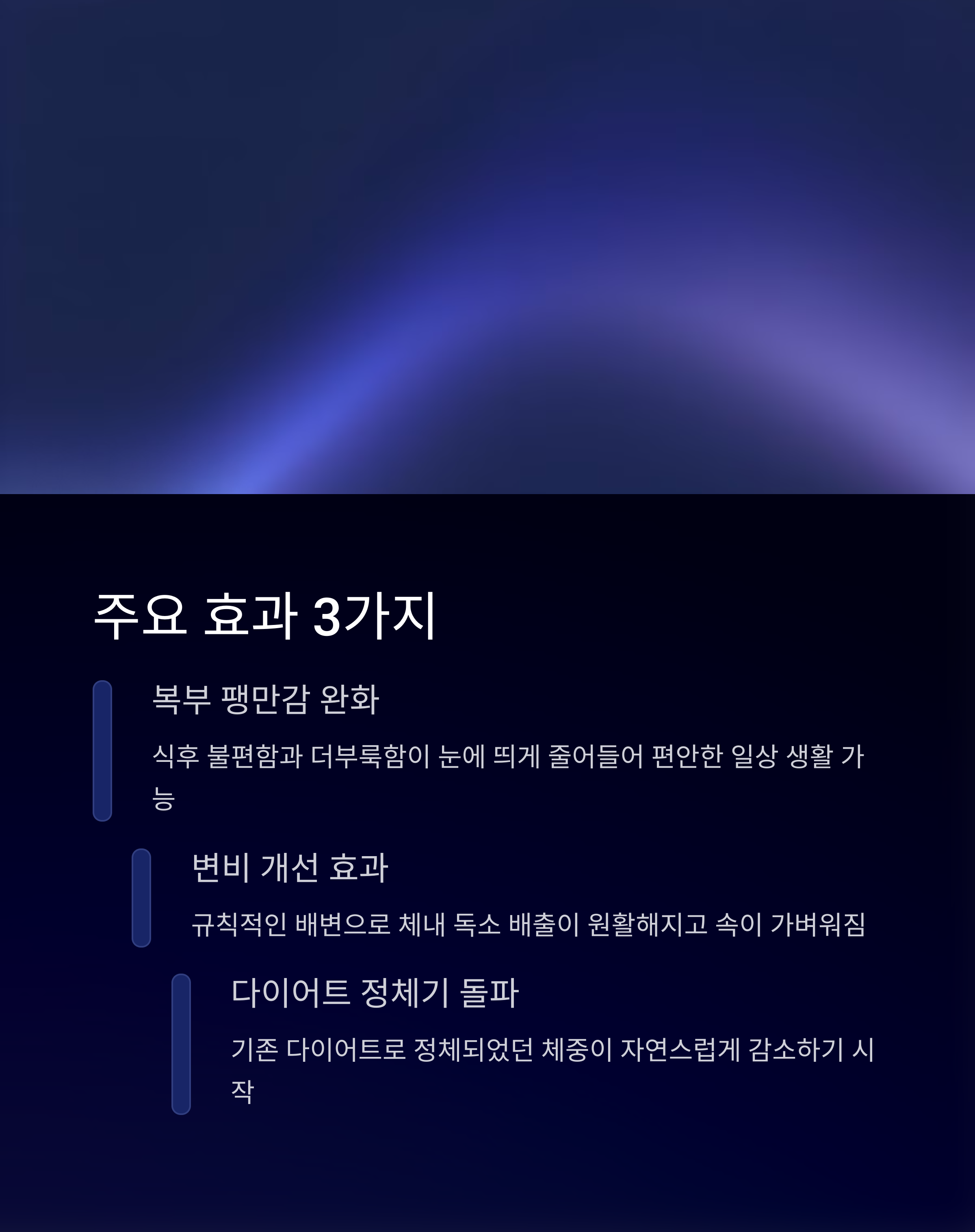 | 복부 팽만감 | 거의 매일 느꼈음 | 3주 차부터 완화됨 |