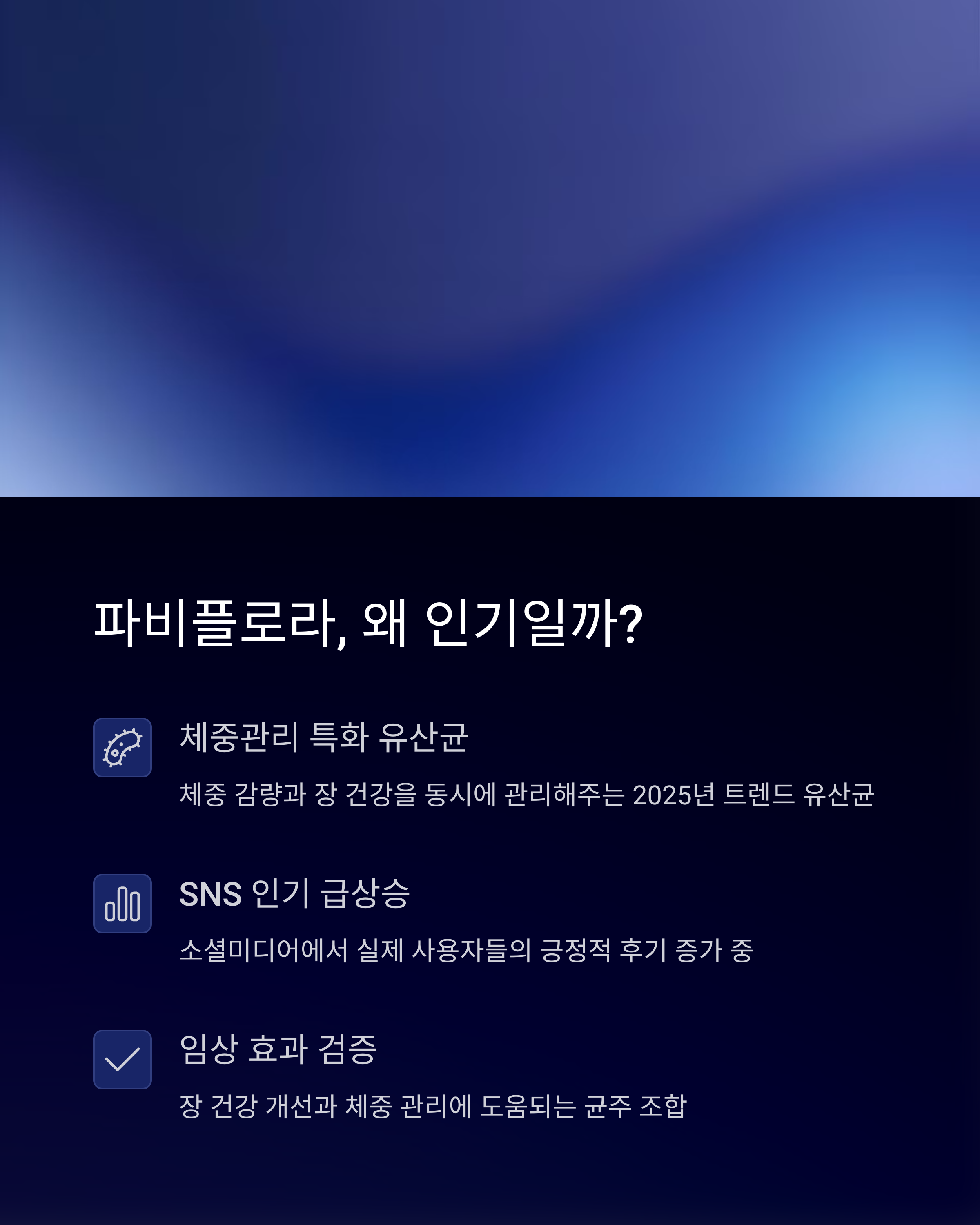 2025년 1월, 파비플로라는 '체지방 감소 유산균'이라는 해시태그와 함께 SNS를 강타했습니다. 최근 발표된