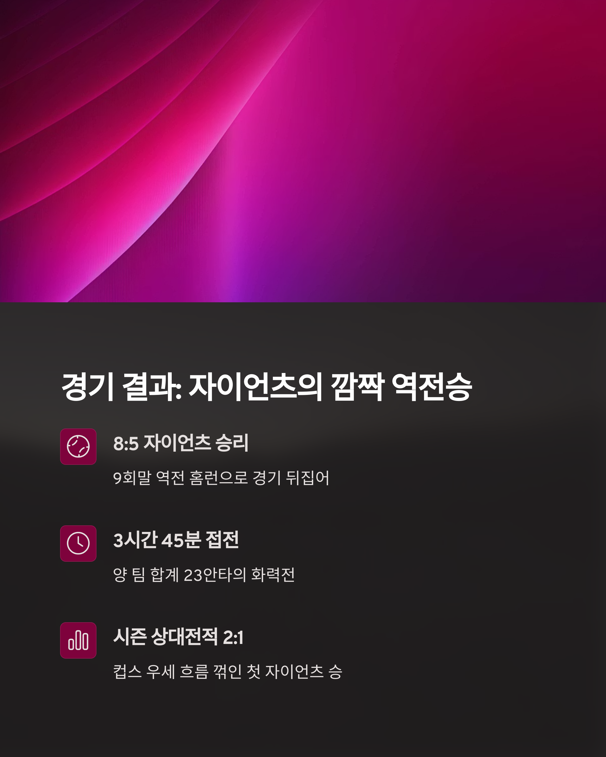 이번 달 가장 화제가 된 경기 중 하나였던 컵스와 자이언츠의 맞대결에서 컵스는 9-2로 압도적인 승리를 거뒀습니다. 특히 이안 햅의 홈런과 카슨 켈리의 시즌 8호 홈런이 승리에 큰 역할을 했죠. 자이언츠는 무려 4개의 실책을 기록하며 자멸한 경기가 되고 말았습니다. 최근 MLB 팬들 사이에서는 “컵스는 진짜다”라는 말이 돌고 있을 정도로 상승세가 확연합니다.