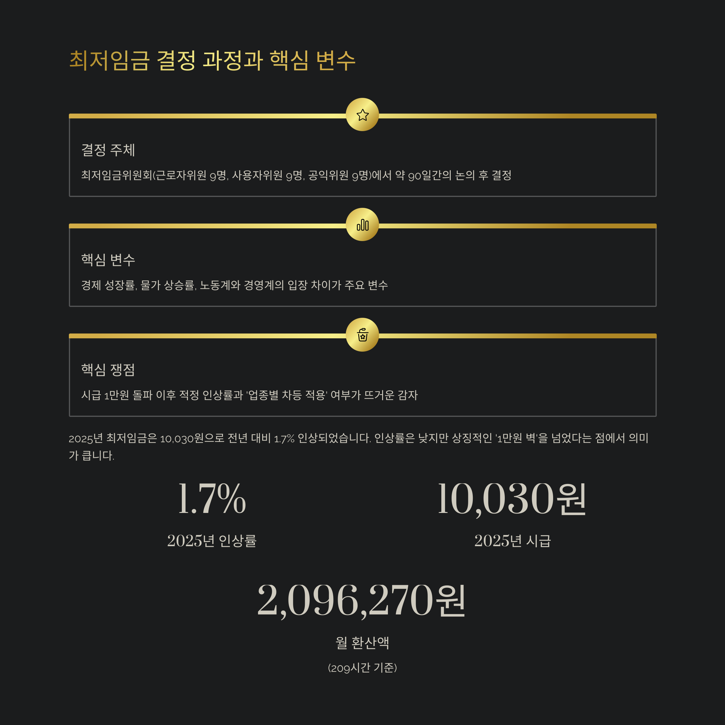 - 결정 시기: 2026년 최저임금은 2025년 여름, 최저임금위원회에서 결정될 예정이에요.