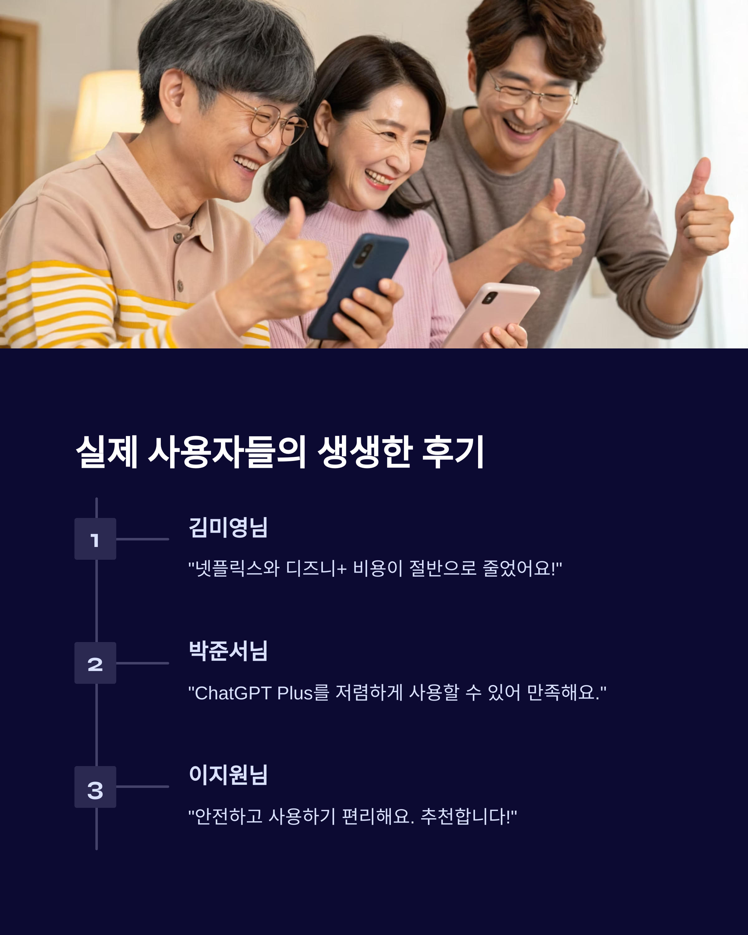 또한, 2025년 기준 4.8/5점의 사용자 만족도를 유지하고 있고, 실시간 채팅과 메시징 시스템으로 24시간 고객 응대가 가능하다는 점도 신뢰를 더해줍니다. 사용자 간 민감한 정보 공유 없이 안전하게 구독을 연결해주는 시스템도 장점이에요.