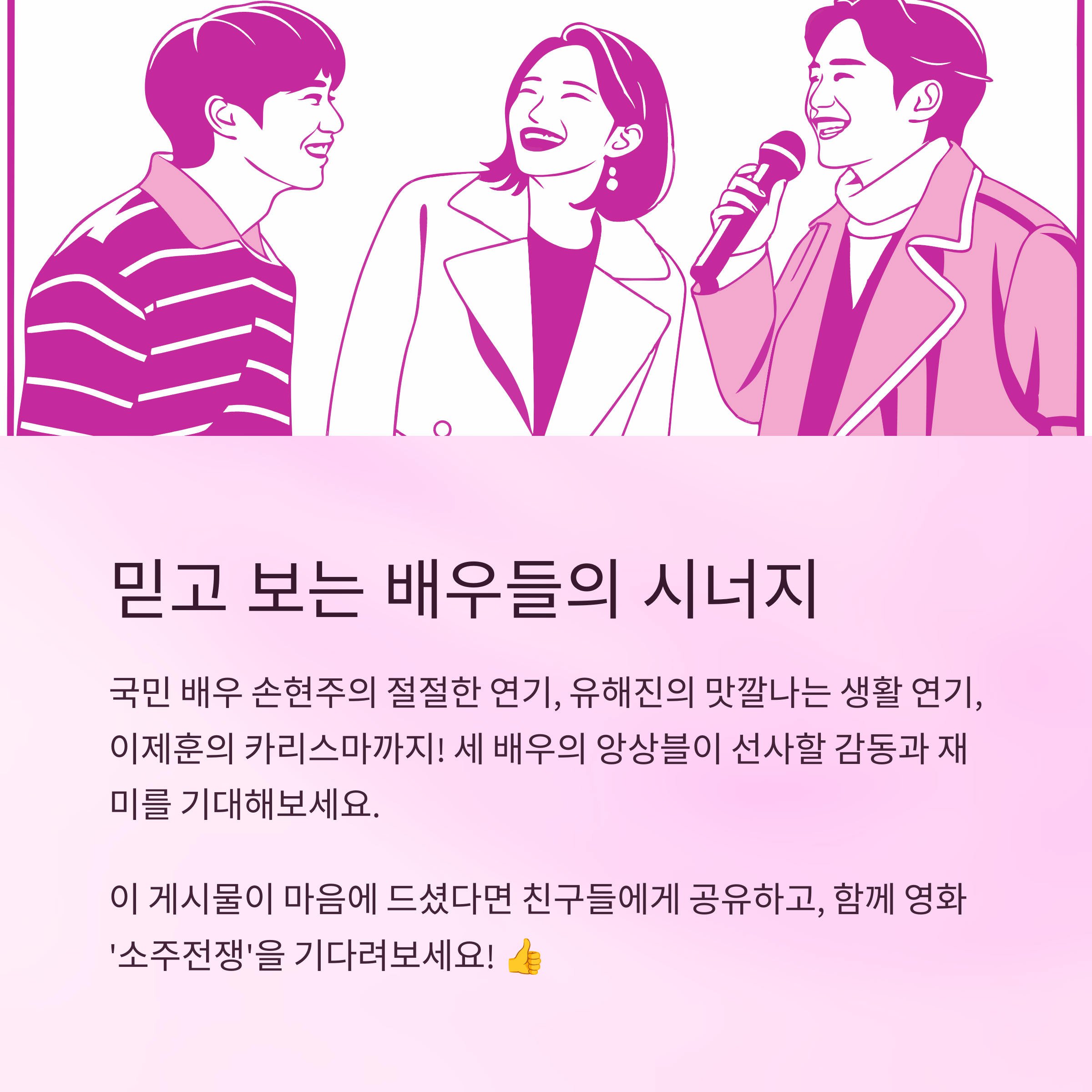여러분도 영화 '소주전쟁'에 대한 기대평이나 궁금한 점이 있다면 언제든지 댓글로 남겨주세요~ 😊