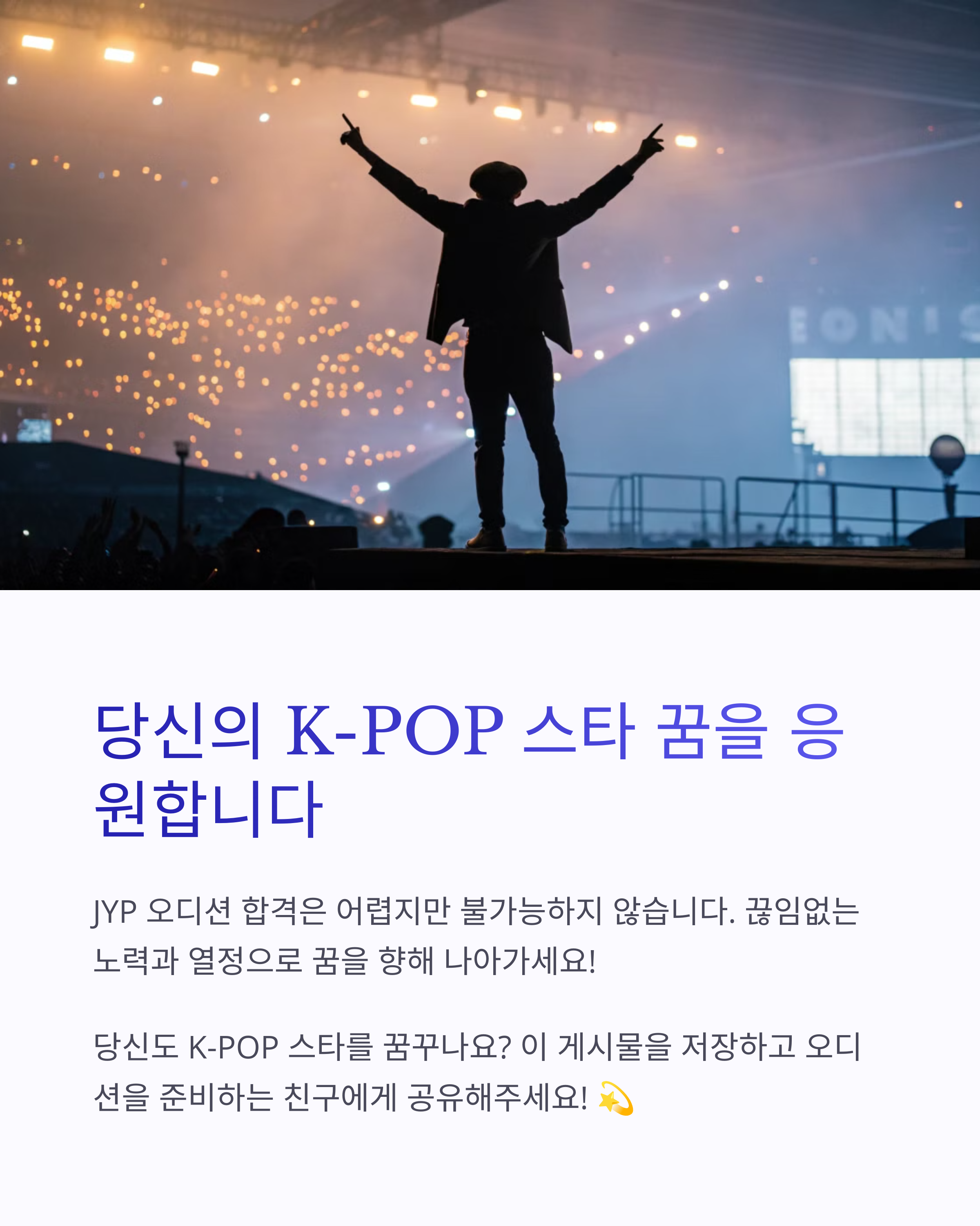 이 팁을 참고하여 여러분도 JYP 오디션에 도전해 보세요! 다음 K-POP 스타는 바로 여러분일 수도 있습니다.