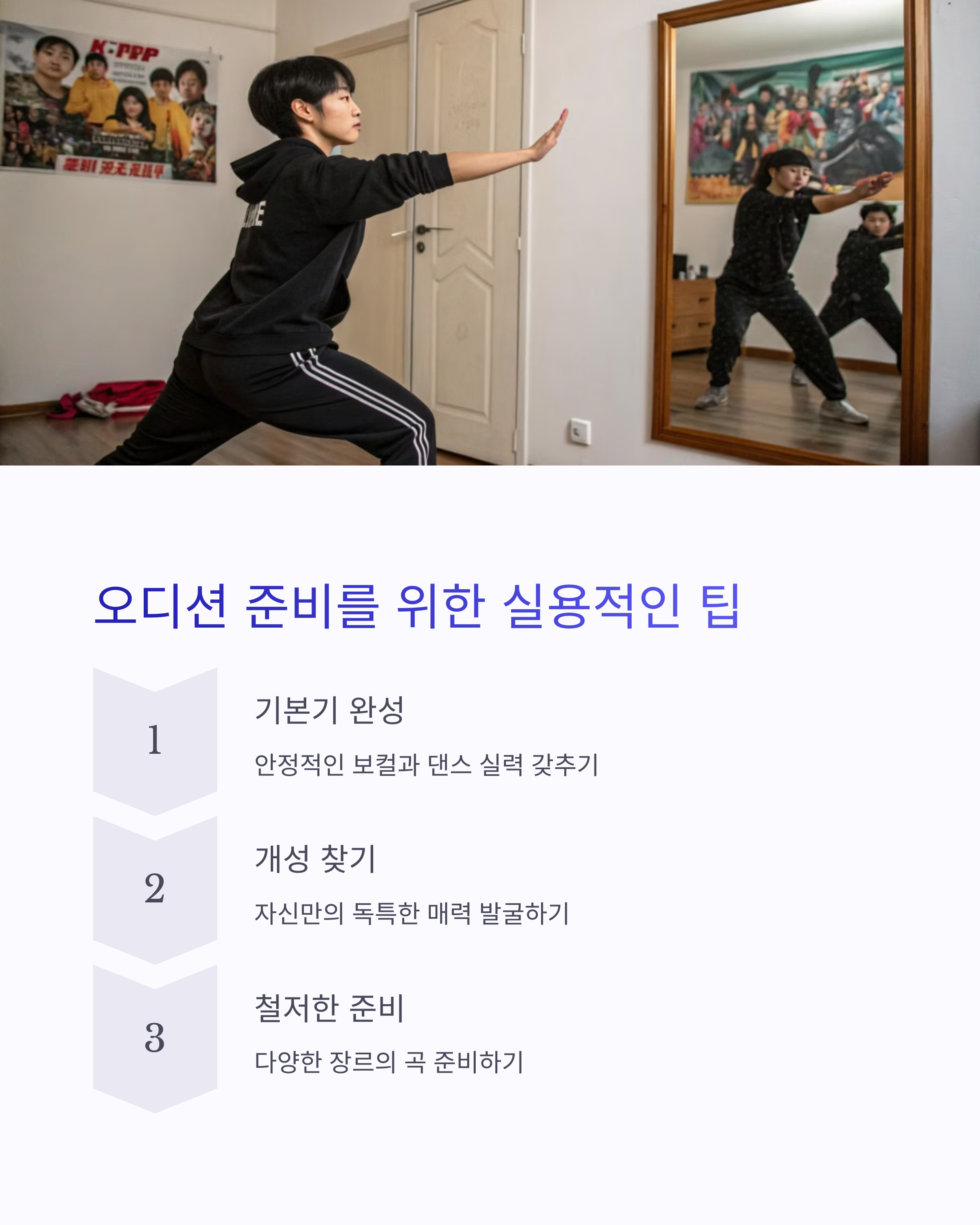 - 멘탈 관리: 무대에서 긴장하지 않고 자신감 있는 태도 유지