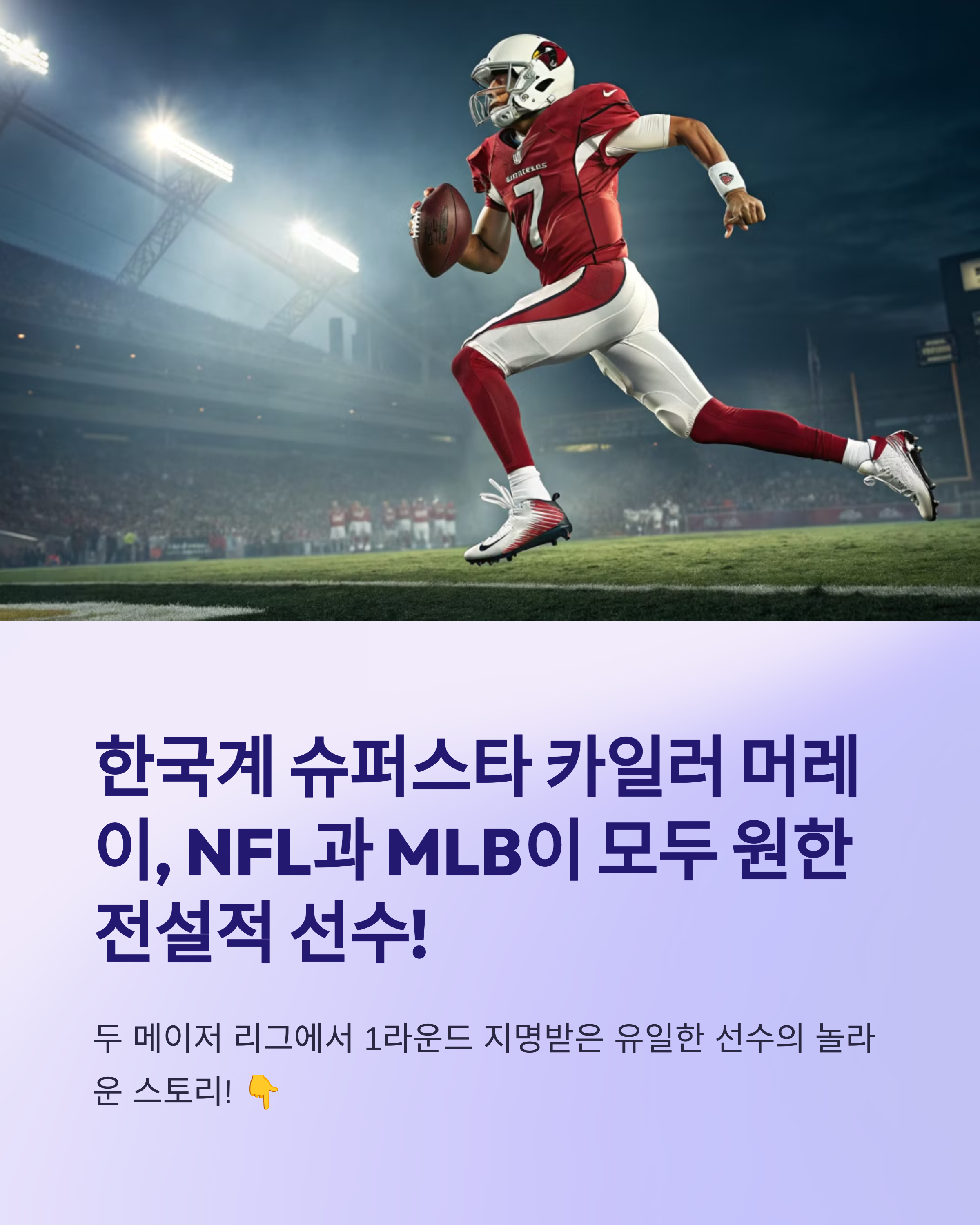 NFL과 MLB 양 리그에서 모두 러브콜을 받았던 슈퍼스타, 한국계 쿼터백 카일러 머레이가 한국을 찾았습니다. 그의 특별한 배경과 방한 일정까지 한눈에 정리해드립니다!