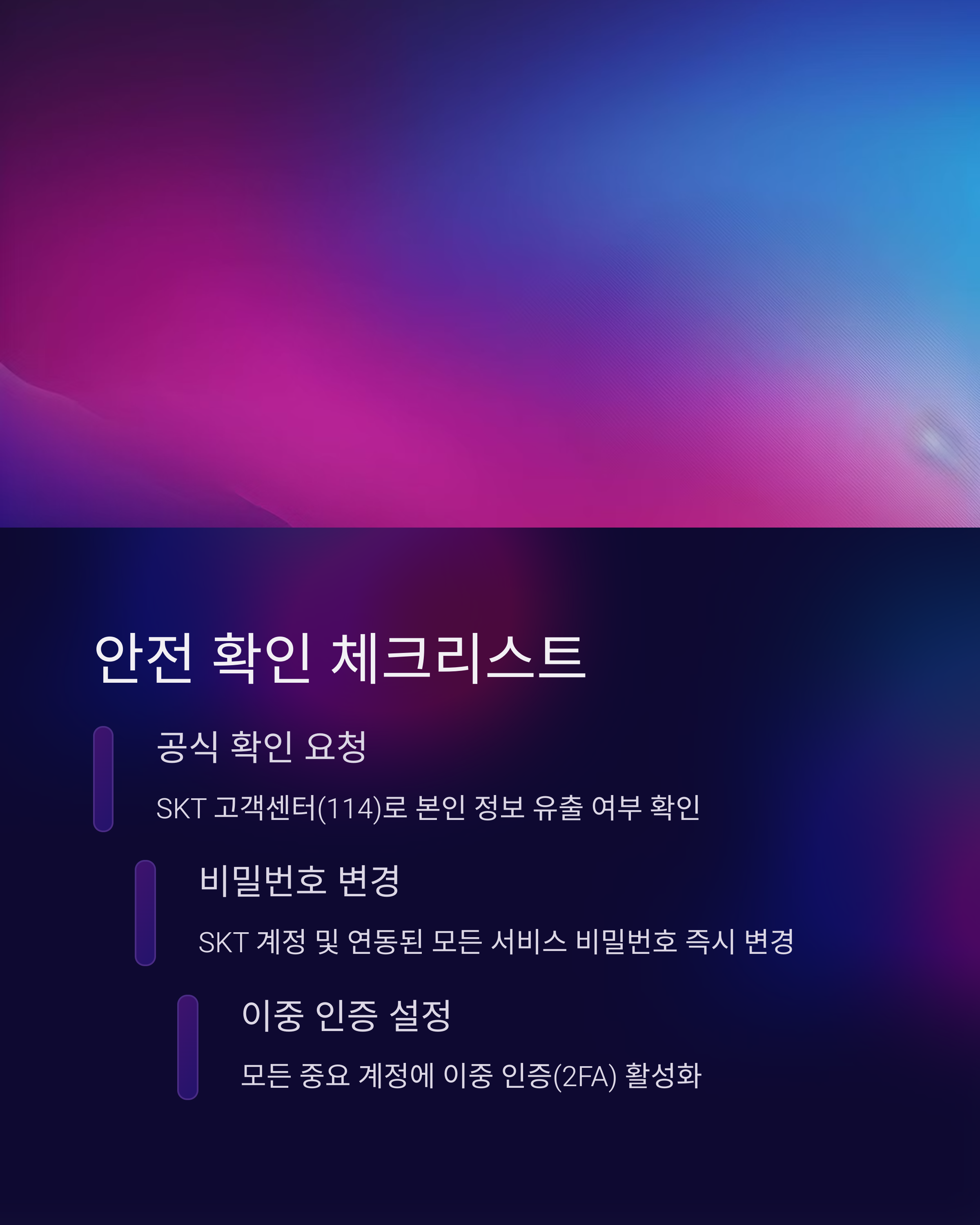 불안하신 분들을 위해, 지금 당장 점검해야 할 보안 행동 리스트를 정리해봤어요. 특히 유심 재발급 이력 있으신 분들 꼭 체크해보세요!